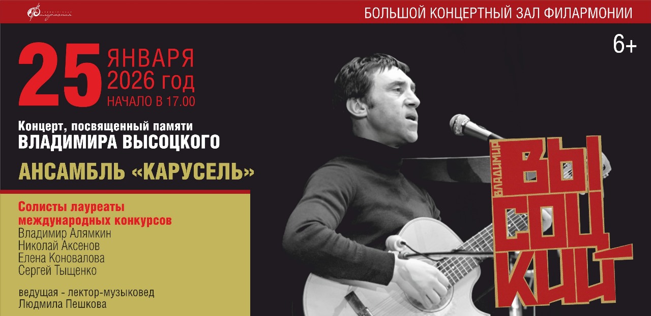 Концерт, посвященный памяти Владимира Высоцкого, с участием солистов филармонии в сопровождении ансамбля "Карусель"