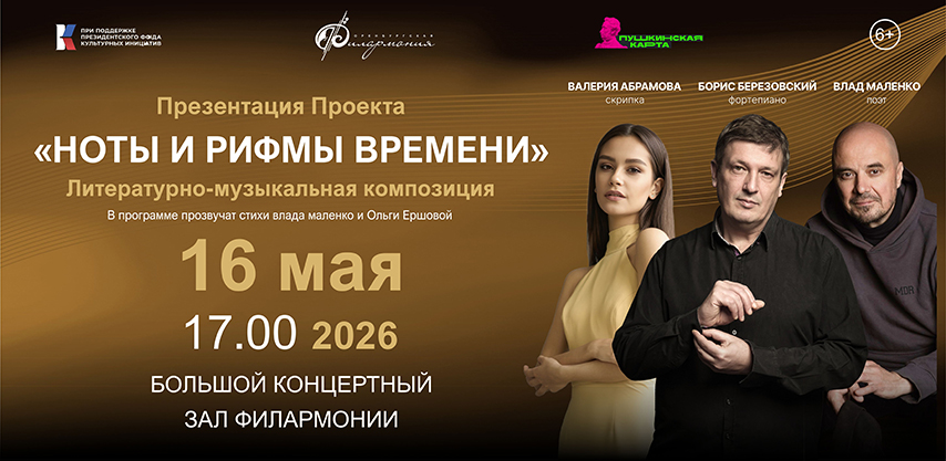 "Ноты и рифмы времени". Борис Березовский (фортепиано), Валерия Абрамова (скрипка), Влад Маленко (поэт)