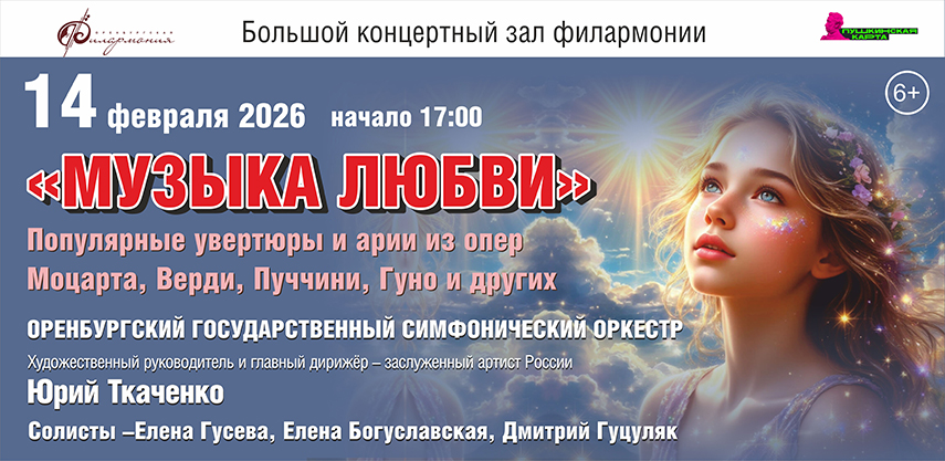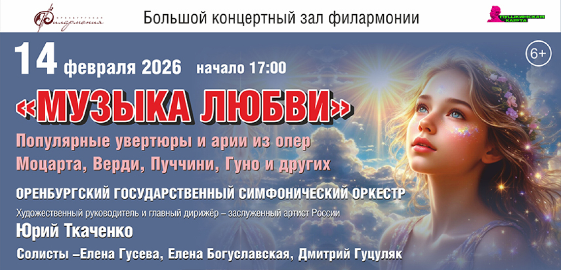 Оренбургский государственный симфонический оркестр, "Музыка любви". Популярные увертюры и арии из опер Моцарта, Верди, Пуччини, Гуно и других.