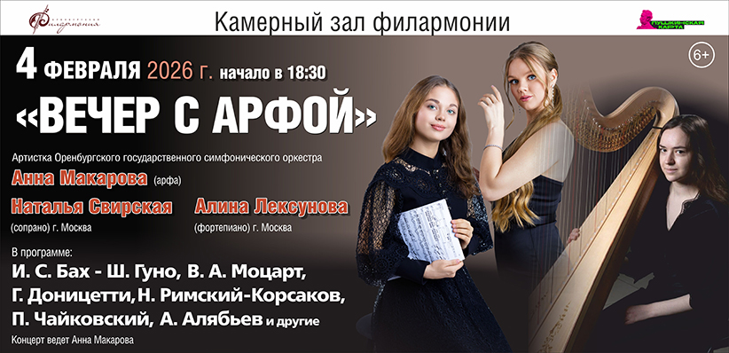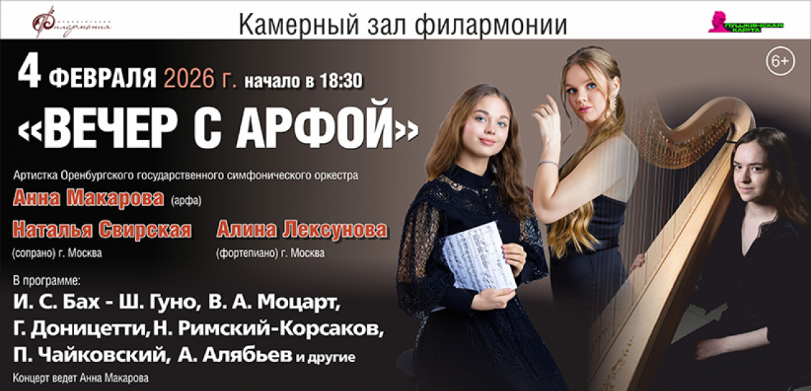 "Вечер с арфой", солистки - Анна Макарова (арфа), Наталья Свирская (сопрано), Алина Лексунова (фортепиано)